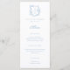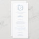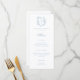Menu de casamento de monograma azul empoeirado da crista floral.