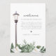 Esta carta de boas-vindas de casamento e cronograma apresenta magnólias em aquarela e um poste de iluminação inspirado no French Quarter. Use este modelo para editar todas as palavras, fonte, cor da fonte e cor do fundo para combinar com o estilo do seu evento. Clique em 'clique para personalizar ainda mais' na seção de personalização para abrir o editor completo. Para adicionar novos ícones, visite https://www.svgrepo.com/ e procure o ícone que você precisa. Baixe como .svg e arraste e solte no editor do Zazzle. Altere a cor do ícone no lado direito do editor.
