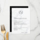 Crista de monograma minimalista simples em preto e branco para cardápio de casamento: Crista de monograma com arte de linha inspirada em vintage e tipografia elegante. Cardápio feito para três blocos - SALADA, PRATOS PRINCIPAIS e SOBREMESAS. Entre na opção de ferramenta de design se forem necessários ajustes quando o texto do seu cardápio for adicionado. Atrás do texto, você tem um grande monograma moderno criando seu próprio sigilo. Dependendo da letra que está no monograma, pode ser necessário algum ajuste. Entre na ferramenta de design para mover as letras ao seu gosto.