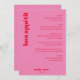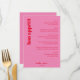 Menu Custom Bright Bold Pink and Red Modern Wedding