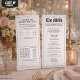 A stylish black and white Quinceañera menu designed with a modern, newspaper-inspired layout. Personalized with your event details, this interactive menu adds an elegant touch to each place setting while enhancing the overall table décor.