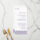 A simplicidade é a chave neste maldito cartão de design do casamento. Uma mistura de cor de morango e tipografia roxa com uma borda de amortecimento roxa ornamentado na parte inferior. As iniciais do casal são realçadas na parte superior da página. Adicione um menu personalizado abaixo. Disponível em cores alternativas com produtos correspondentes.
