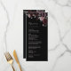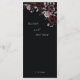 Dark moody romantic roses menu card with bride and groom name and the wedding date on the backside.
