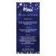 Cartão de menu de festa de aniversário. Personalize e adicione um nome, idade, data e menu. Um fundo azul marinho. A cor azul é irregular. Decorado com estrelas. Letras brancas coloridas.