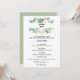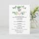 Este moderno cardápio floral tropical é perfeito para uma recepção de casamento. Essa design encantadora e atraente apresenta flores verdes e rosa deliciosas, bem arrumadas em quadros geométricos, evocando felicidade e beleza natural.