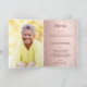Um fundo gradiente em rosa dourado falso com diamantes rosa. O nome é escrito com uma fonte moderna de letra manual colorida em rosa dourado escuro. O número 70 é escrito com uma fonte estilo balão, cursiva. Texto de boas-vindas, foto, cardápio e um agradecimento no verso.