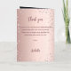 Um fundo gradiente em rosa dourado falso com diamantes rosa. O nome é escrito com uma fonte moderna de letra manual colorida em rosa dourado escuro. O número 90 é escrito com uma fonte estilo balão, cursiva. Texto de boas-vindas, foto, cardápio e uma nota de agradecimento no verso.