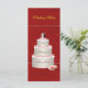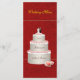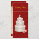 Bolo de casamento com os nomes dos casais e data num fundo de veludo vermelho. Menu no verso Também pode ser usado para um programa de casamento