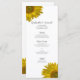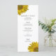 O bonito Menu de Casamento de Girassol Amarelo pode ser personalizado com os nomes da noiva e do noivo, localização do local, data e detalhes da refeição que você servirá no seu almoço de verão ou outono, janto de recepção de casamentos ou brunch de casamento poste. Este simples, mas elegante menu de casamento floral apresenta girassóis amarelos adorando os cantos com fundo branco. Inpo perfeito para o evento de festa do jardim de verão.