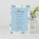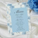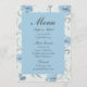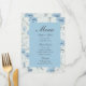 Coloque a cena para uma recepção inesquecível com este cardápio de casamento azul empoeirado do jardim floral. As flores deliciosas de aquarelas e os detalhes botânicos românticos trazem o encanto de cottagecore para a sua configuração de mesa, enquanto os tons de safra suaves adicionam elegância ao eterno. Perfeito para comemorações de primavera, casamentos rurais rústicos e recepções quic vintage, este design de menu captura o calor da estação — seja sob luzes cintilantes ou em um local ao ar livre florescente.