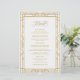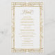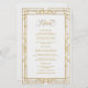 O menu de casamento apresenta uma imagem geométrica antiga do ouro, um fundo esbranquiçado e um elegante roteiro de ouro antigo.