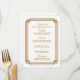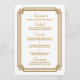 Estes cartões de menu apresentam uma paleta de cores branca e dourada, um quadro geométrico e outros detalhes estilísticos, todos inspirados na Arte Deco e nos vinte e poucos anos ruidosos. Você pode personalizar os campos de texto de exemplo de acordo com o seu gosto.
