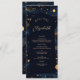 Adicione um toque de magia à sua recepção com este menu de casamento com tema celeste que apresenta o nome de cada convidado em um roteiro elegante. O fundo do marinho profundo é adornado com estrelas ouros, luas e constelações, criando uma estética sonhadora do céu noturno. Um arco gracioso enquadra o nome personalizado e os detalhes do menu em fontes refinadas de serifa e caligrafia. Ideal para casamentos noturnos, comemorações de stargazer, ou eventos inspirados na astrologia, este menu dobra como um cartão de lugar único e uma marca de manutenção. Totalmente editável para nomes de convidados e detalhes do curso.