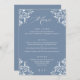 Elegante Dusty Blue Wedding Menu: Este menu de luxo é perfeito para um casamento elegante e clássico. Ele apresenta uma fronteira de ornamentado com caligrafia moderna e elegante. Veja todos os produtos correspondentes abaixo.
