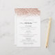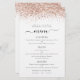 Menu de Casamento de Script Glitter Dourado Elegante de Rosa de Orçamento. Um preço orçamentário de 5,5" x 8,5", em uma elegante estoque LINEN de 110 lb - para uma sensação de luxo pelo valor do excelente, isso é perfeito para menus, além de convites e programas, etc. Este alternativo de tamanho de orçamento também está disponível em outras opções de papel. O estoque do cartão SEMI-GLOSS de 110 lb tem aproximadamente a mesma espessura do cartão postal, portanto também funciona bem para convites. O papel FELT de 100 lbs é colorido por buff, NÃO branco, então adiciona um toque rústico. O estoque de papel MATTE de 80 lb é branco brilhante, para impressão nítida, excelente para seus menus e programas, enquanto o papel SATIN de 80 lb é fino e leve, ideal para gabinetes. Um script de na moda com alternâncias para o Menu do cabeçalho e uma borda falsa da brilha no topo de ambos os lados em rosa dourado. Personalize facilmente o resto do texto para seus próprios detalhes, o que inclui alternativos para suas opções vegetarianas ou vegetarianas.