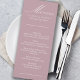 Cartão personalizado de cardápio de casamento. Design simples, clássico e elegante, em cor rosa rosa a poeirento, para coordenar com as cores do seu casamento (procure na minha loja cores do alternativo ou clique em "personalizar mais" e mude a cor de fundo para o fato). O modelo está pronto para você adicionar os nomes da noiva e noiva, a data do casamento e o seu menu.