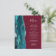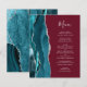 A borda esquerda deste elegante cardápio moderno de casamento apresenta uma cor azul-lacrimogênea agata bordada com falso brilho prateado. O texto personalizável combina o script de escrita manual de cinzas prateadas e as fontes em fundo burgundy. O verso apresenta um design de barro e de agata prateado correspondentes.