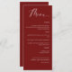 Casamento vermelho e legante ou cartão de menu de recepção jante. Design contemporâneo, simples e elegante com uma bela caligrafia escrita à mão. Cor de fundo da frente e do fundo em burgundy. Capacidade de alterar as cores frontal e/ou de fundo selecionando "personalizar mais". Design disponível em uma variedade de opções de cores. Parte da nossa coleção "Burgundy Red and Berry Wedding and Event Products" com uma variedade de produtos de coordenação disponíveis, incluindo cartões de planos de assentos e números de mesas.