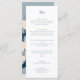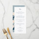 Elevem sua experiência de jantar de casamento com este menu de casamento minimalista. A parte frontal apresenta linhas limpas sem decorações, garantindo um foco nos itens do menu. No verso, uma ilustração ao estilo na moda Japandi de uma flor de cereja contra um fundo azul claro adiciona um toque de sofisticação e charme à sua recepção.