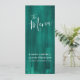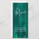 Bonito tom de joia verde esmeralda formando mão pintada cardápio de janto de casamento ou cardápio de evento especial. Edite este menu de 4 cursos com suas próprias palavras. Simples mas moderno menu de arte verde esmeralda lavado. Ideal para um sumptuoso casamento de joia verde ou evento de aniversário de casamento emerald. © Design e original pintado com a mão por abstrato de arte por Sarah Trett exclusivamente para www.mylittleedenweddings.com em zazzle.