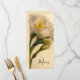 Personalize o bonito Menu de Casamento da primavera dos Daffodils Duplos Brancos com os detalhes da refeição que você servirá no janto de recepção de casamentos de março, abril ou maio, no almoço de chá de panela da festa de jardim ou poste o almoço de casamento adicionando a salada ou o primeiro curso, a entrada ou o segundo curso e a sobremesa ou o terceiro curso. Personalize-o com os nomes da noiva e do noivo, localização do local e data do evento. Este elegante cardápio de casamento floral personalizado apresenta uma fotografia floral pintada digitalmente de flores duplas de daffodilo branco sobre o caule com um fundo de cor creme esbranquiçado.