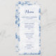 Menu de Casamento de Aquarela Azul Moderno Floral Flor Aquarela. Para mais personalização, clique no botão "Personalizar" e use nossa ferramenta de design para modificar este modelo. Todo estilo de texto, cores, tamanhos podem ser modificados para ajustado das suas necessidades.