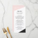 Cartão de cardápio de casamento elegante e moderno, com sotaques geométricos cor-de-rosa e cinzas escuras. Este convite moderno será perfeito para qualquer tema de casamento ou estação. Itens correspondentes estão disponíveis.