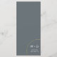 Anéis grandes e luxuosos decoram o seu menu de casamento mínimo, emprestando-lhes um acabamento sutilmente sofisticado. Cada curso é descrito abaixo em fontes formais contra um pano de fundo silenciado de tons legal ou terríveis. No verso, suas iniciais aparecem contra um bloco sólido de cor que complementa o esquema escolhido. Personalize-o com seus próprios detalhes. Para mais personalização, clique no link "Personalizar" e use as ferramentas avançadas de design do Zazzle.