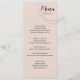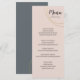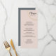 Anéis grandes e luxuosos decoram o seu menu de casamento mínimo, emprestando-lhes um acabamento sutilmente sofisticado. Cada curso é descrito abaixo em fontes formais contra um pano de fundo silenciado de tons legal ou terríveis. No verso, suas iniciais aparecem contra um bloco sólido de cor que complementa o esquema escolhido. Personalize-o com seus próprios detalhes. Para mais personalização, clique no link "Personalizar" e use as ferramentas avançadas de design do Zazzle.