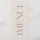 Este Menu Casamento em cores beges neutras será excelente para o casamento moderno. Apresenta letras em negrito no lado frontal da placa. O menu é dobrado e tem uma lista editável de pratos no verso. Você pode personalizar este menu com os nomes e a data do evento. Você também pode alterar a cor do plano de fundo, as fontes e as cores da fonte, se necessário, basta clicar em "Personalizar mais".