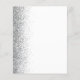 A borda esquerda deste elegante menu de casamento moderno apresenta uma borda cintilante de prata. O texto personalizável combina o script de escrita manual de cinzas e as fontes de impressão em um fundo branco. O verso apresenta um design branco e prateado correspondentes.