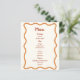 Este design apresenta uma simples, branca, estilo desenhado à mão, uma borda ondulada. A fonte usada para o texto principal é casual e divertida, com uma qualidade manuscrita, dando-lhe um toque pessoal e íntimo. Use esta design se quiser priorizar uma vibração amigável e acessível ao seu casamento sobre a formalidade.