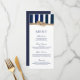 Este menu náutico de casamento personalizado apresenta faixas de marinho e de aquarela branca com um nó de corda náutica. Personalize com todos os detalhes do seu casamento ou menu de eventos. Coordena-se perfeitamente com o convite de casamento e a coleção do "nó náutico".