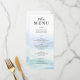 Adicione este menu correspondente à decoração do casamento. Esta incrível coleção mínima de design de casamentos de praia em aquarela apresenta um fundo oceânico sereno e pintado à mão que captura perfeitamente a beleza tranquila do mar. Com ondas suaves e correntes em tons delicados de azul e lacre, e fontes elegantes e subestimadas, essa design exumenta um senso de calma e sofisticação. A simplicidade do design faz com que seja incrivelmente chique, oferecendo um sentimento moderno, mas eterno, que ressoará com qualquer um sonhando com uma celebração à beira-mar. As delicadas aquarelas e o estilo minimalista criam uma atmosfera refinada e romântica que complementa a beleza natural de qualquer cenário de praia. Perfeito para casais que buscam misturar elegância com o charme relaxado de um casamento costeiro, esta coleção certamente impressionará convidados e dará o tom para um evento memorável e pitoresco. É a escolha ideal para casais que querem uma estética de casamento que reflita o seu amor pelo oceano e a beleza da simplicidade. Veja a coleção inteira para mais itens correspondentes!
