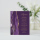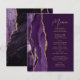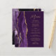 A borda esquerda deste elegante cardápio moderno de casamento apresenta um design de agata de cor-d-água roxa, aparado com uma falso brilho dourado. O texto personalizável combina o script de escrita manual dourado e as fontes sans serif em um fundo de ameixa. O design de agata roxo e dourado é repetido no verso.