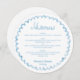 Menu Whimsical Round Wedding, Quadro De Cor De Água Azul Claro, Encantador, Moderno E Totalmente Personalizável. Celebre o amor com uma torcida alegre! Este cardápio de casamento redondo e caprichoso foi projetado para deliciar seus hóspedes e dar um tom alegre e elegante para seu dia especial. Apresentando uma estrutura de aquarela ilustrada manualmente em azul claro e macio sobre um fundo branco limpo, este menu captura a energia fresca das comemorações de primavera e verão, ou o encantamento nítido de um casamento no inverno lúdico. O que torna esta design realmente inesquecível? A Forma Redonda Única - Um detalhe moderno e atraente que traz personalidade e talento à sua mesa. Whimsy desenhado à mão - O quadro azul macio, pintado com cuidado, adiciona um toque de encanto artístico à sua celebração. Totalmente personalizável - edite facilmente o texto, as fontes e o layout on-line para se adequar ao seu estilo de casamento, romântico, lúdico ou clássico, sem necessidade de ferramentas especiais. Duas opções fáceis - Escolha menus impressos profissionais ou faça o download instantâneo do arquivo digital para uma opção conveniente e econômica. Este cardápio de casamento redondo é mais do que uma lista de cursos, é parte da história que você está contando. De primeira vista a última mordida, irradia alegria, charme e personalidade. Que o dia do seu casamento comece com detalhes que se sentem como você. Comece a personalizar seu menu hoje e torne cada momento mágico.