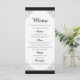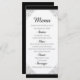 Preto, branco e cinza, simples mas elegante e sofisticado menus de casamento florais embelezados. Personalize esses menus clássicos de casamento com sua própria comida e detalhes de bebidas.