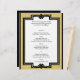 Este belo e elegante design, chamado de Black White e Dourado Convite de Casamento de Quadros de Deco de Arte, tem um fundo negro. Há bordas alternadas em preto, branco e ouro e um belo quadro preto. Seu texto vai no meio. Este conjunto tem convites, cartões salve a data, cartões de resposta, cartões de agradecimento, placas de número de tabela, selos de envelope, etiquetas de vinho, classificadores e etiquetas de endereço de devolução disponíveis. Use os adesivos de selagem de envelope para qualquer dos seus presentes do DIY - estes estão disponíveis em tamanhos grandes e pequenos!