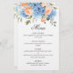 Menu de Casamento de Rosas Blush Azuis Hydrangea P