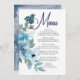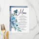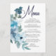 Menu de Casamento de Rosas de Aquarela Azul de Pas