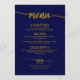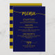 Menu de Casamento de Script Azul do Marinho Dourad