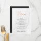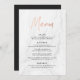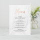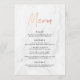 Na moda e cartão moderno de cardápio de casamento, com uma letra falsa do roteiro de folha de rosa dourada, fundo de mármore branco e espaços reservados para o seu menu de casamento personalizado. A parte de trás do menu de casamento mármore e ouro-rosa pode ser alterada para uma cor de sua escolha com a ferramenta Personalizar.