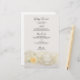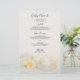 Personalize o elegante Menu de Casamento de Tea Cup e White Rose com os detalhes da refeição que você servirá no almoço de chá de panela da sua festa de chá, poste o brunch de casamento ou o janto de recepção de casamentos, adicionando a salada ou o primeiro curso, a entrada ou o segundo curso e a sobremesa ou o terceiro curso. Personalize-o com os nomes da noiva e noiva, local de evento e data. Este clássico menu de casamento de chá alto personalizado apresenta uma fotografia floral de uma xícara de chá e um pires com bordas douradas e uma flor de rosa branca com cebola branca.