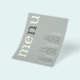 Menu de Casamento Simples de Texto de Imersão. Um alternativo PAPER (não cartão) de valor de excelente a um preço orçamentário. Este design tipográfico moderno tem Menu em grande tipografia em Ivory com o "n" em cinzas, rotacionado e à esquerda sobre um fundo de sábio verde-claro. A cor de fundo pode ser alterada se você desejar por meio de Personalizar mais.