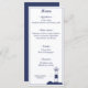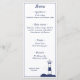 Menu de casamento elegante e simples com uma ilustração de um farol em tons azuis marinho para um casamento de tema marinho e náutico!
