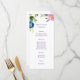 Este cartão de cardápio apresenta uma borda superior de flores bonito em cores de cor rosa violeta e azul aninhadas entre folhas verdes. Seu texto personalizado está em violeta roxa no meio. Esta placa de menu é suficientemente versátil para ser usada em vários eventos, especialmente no primavera e no verão. Tem convites de casamento e outros produtos de casamento na nossa loja.
