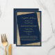 Um moderno Menu de Casamento marinho, azul e dourado. Este cartão de cardápio azul e ouro de marinho na moda é perfeito para qualquer garota de moda clássica e sofisticada. Este design é ideal para um evento de festa elegante e de tendências. Personalize este design com sua própria mensagem e informações personalizadas. Todas as designs são impressas.
