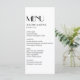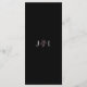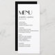 Um cartão de menu elegante para o seu janto de casamento. Este cartão preto e branco apresenta uma tipografia negra moderna com o título Menu. Personalize com os nomes da noiva e do noivo, data do casamento e menu. Todo o texto na frente é deixado justificado. O verso é preto com as iniciais do casal em branco separadas por uma seringa embebida
