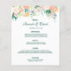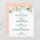 Um cartão de cardápio de casamento elegante e romântico. Rosas de cor aquosa, flores em branco, cor-de-rosa esbranquiçado, laranja com folhagem verde. Modelos para seus nomes, data e menu de casamento. Fundo branco na frente, cor de cobre na parte traseira. Cartas verdes.