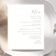 Este simples cardápio moderno de casamento mostra um texto verde sábio sobre um fundo branco. A palavra "Menu" aparece na caligrafia na moda. Adicione o nome do casal e a data do casamento em script e itálico, juntamente com os detalhes do menu na fonte sans serif. O inverso é um tom sólido de verde sábio.